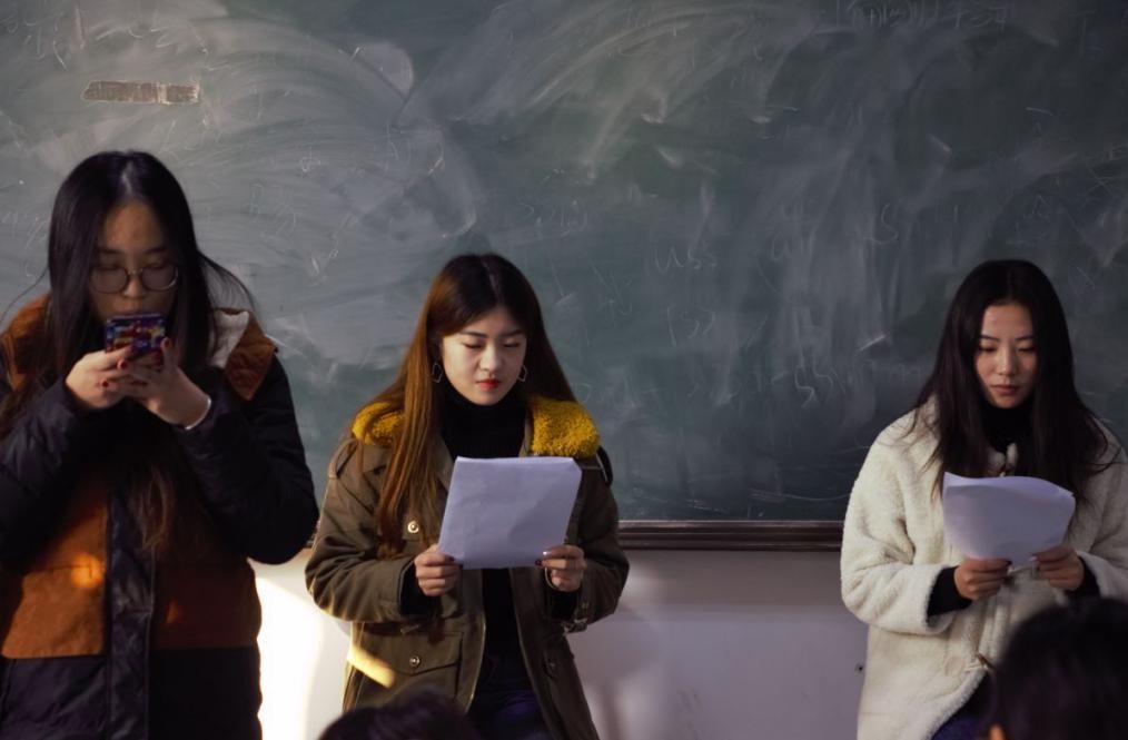 2019年1月3日,新闻与传播学院17级编导专业课“剧本写作”期末结课课程——原创剧本朗读会在博文楼303教室举办。本次剧本朗读会由于相坤老师主持,编导专业全体学生参与。