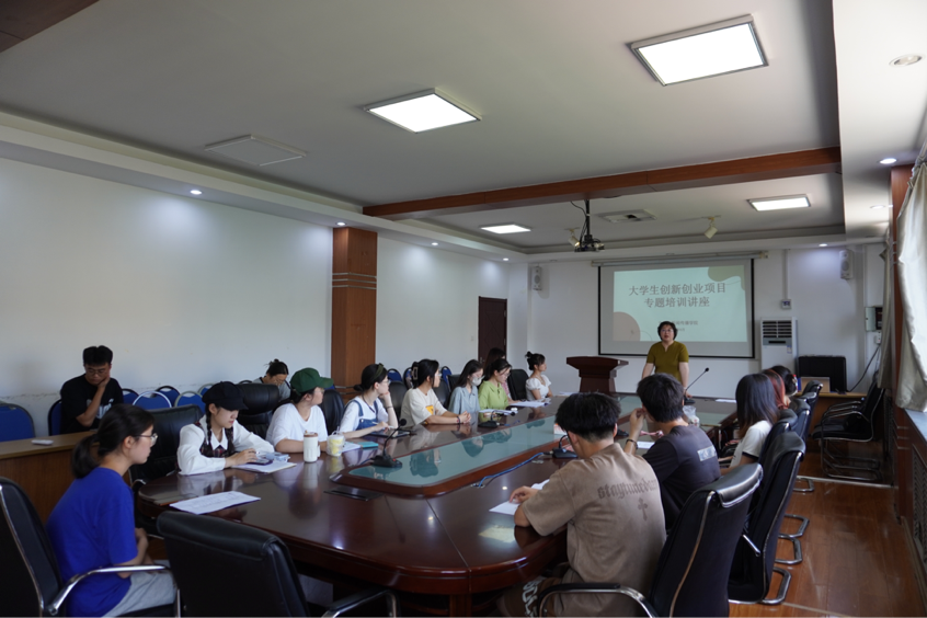2023年6月30日上午,黑料 党委副书记戚昕在博文楼521会议室举办创新创业项目专题培训,学院各专业大创立项学生参加会议。
