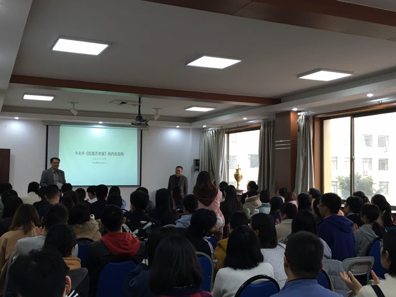 11月28日下午3:00,文学院博文讲堂2018年第15讲——《卡夫卡<饥饿艺术家>的内在结构》于我校浮山校区博文楼521会议室举行,特邀主讲人为北京大学中国语言文学系教授、北京大学比较文学与比较文化研究所所长张辉。文学院师生积极参与,现场学术气氛浓厚。