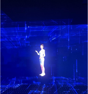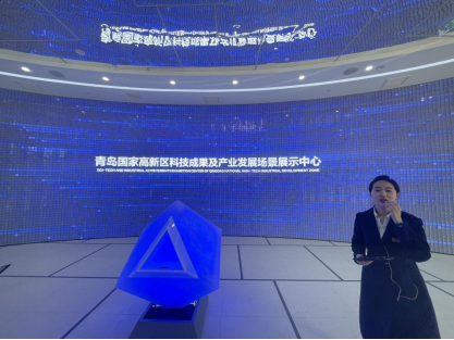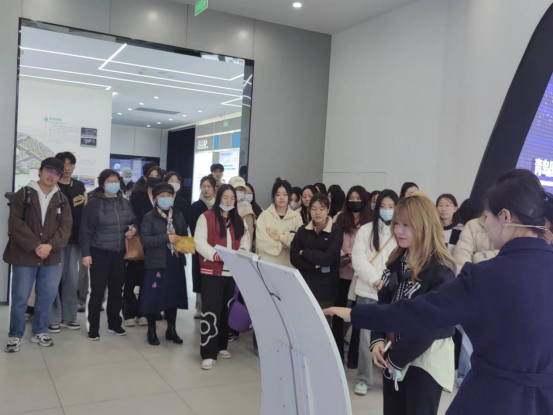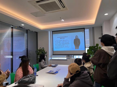 接下来,学生们共同前往高新区融媒体中心,讲解员热诚的展示了青岛国家高新区科技成果及产业发展场景,学生们体验到精妙绝伦的未来概念城市,并通过人机互动的形式让学生们沉浸式参与到新一代信息技术体验中心。在这里不少学生体验了AI定制动画形象,利用人工智能创新技术即时形成动画影像及数据分析。在隔壁的媒体中心,学生们与职场工作人员一同参与了公司例会,第一现场直观的感受职场生活,参与到一线工作人员的头脑风暴中,有助于学生未来学习、工作上理论与实践相结合。