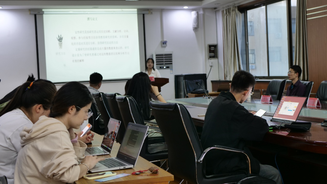 学术沙龙开始,新闻与传播专业周长钰率先发言,主要围绕论文写作和实践活动两部分展开个人分享。在论文写作方面,周长钰给出了以下几点自己总结的切实建议。第一点,撰写论文初始是要找到适合自己的兴趣点,这个兴趣点并不一定是局限在学术范围内的,它可以是电影、游戏、剧本杀、短视频和社会热点等。她指出,兴趣是最好的老师,以兴趣撬动论文最初的写作动力。第二点,明确了撰写论文的定性研究和定量研究。所谓定性研究是指研究者运用历史回顾、文献分析、访问、观察等方法获得教育研究的资料,并用非量化的手段对其进行分析,获得研究结论的方法。而定量研究的结果通常是由大量的数据来表示的。第三点,周长钰提出撰写论文的几点建议,主要有:保持良好的写作习惯,保持思维的连贯性和不被打断;及时与导师沟通;保持自己的独立思考;多看文献;要有问题意识,明确自己的论文写作是要解决什么问题,有什么意义,论文写作过程中多问自己为什么。在实践活动方面,她鼓励多参加竞赛,如互联网大赛、挑战杯等,把自己的课程作业向这方面转化,更好地享受参与的过程。