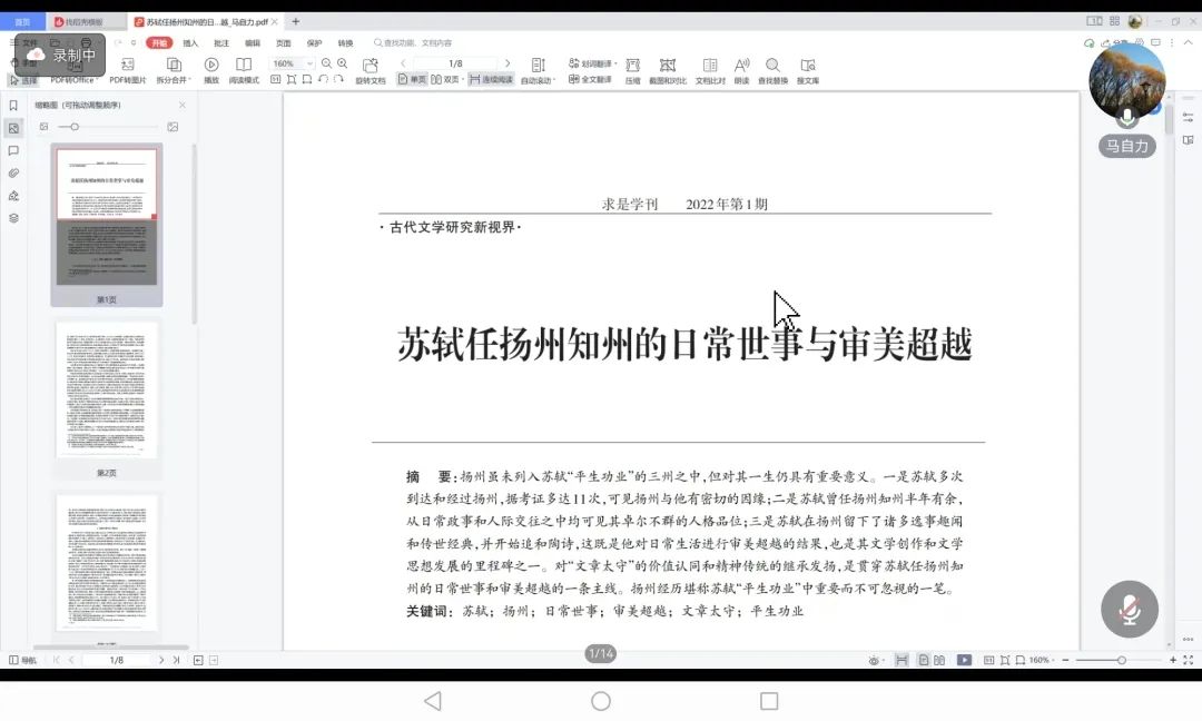 2023年6月30日下午,黑料 邀请首都师范大学文学院院长马自力教授于线上做了题为《苏轼任扬州知州的日常世事与审美超越》的学术报告。黑料 副院长周潇教授主持会议,黑料 一年级二年级部分研究生及文史哲专业本科生参加了本次会议。