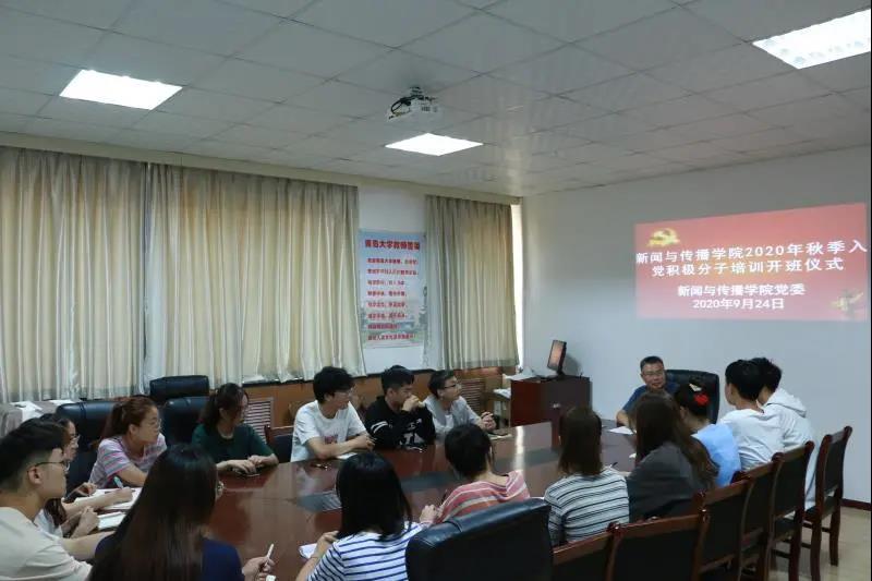近日,新闻与传播学院2020秋季入党积极分子培训班正式开班。9月24日14时30分,学院党委书记张银亭在博文楼412会议室主持了开班仪式。