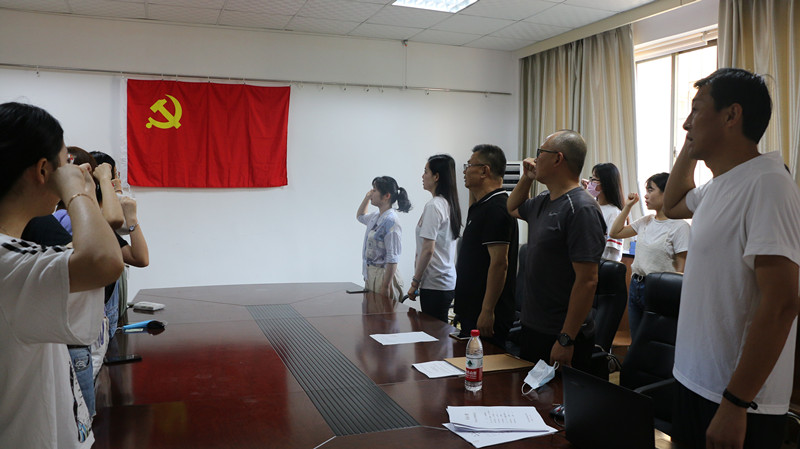新闻与传播学院学生党支部在此次疫情期间所做出的贡献;也解读了中国共产党在此次疫情防护中起到的决定性作用。随后学院党委副书记罗清辉宣读了新闻与传播学院2019年下半年新发展党员名单。宣读完毕后,全体人员面向党旗,在毕业生党员代表张笑如同学的领读下进行入党誓词宣誓。