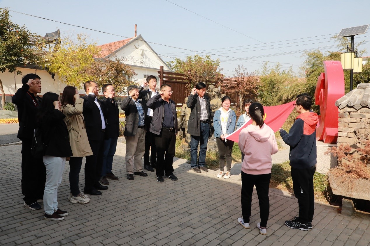 在纪念馆前,全体党员面对党旗重温入党誓词。面对庄严的党旗,党员们感受到肩上的责任,坚定了为社会主义事业奋斗的信念!
