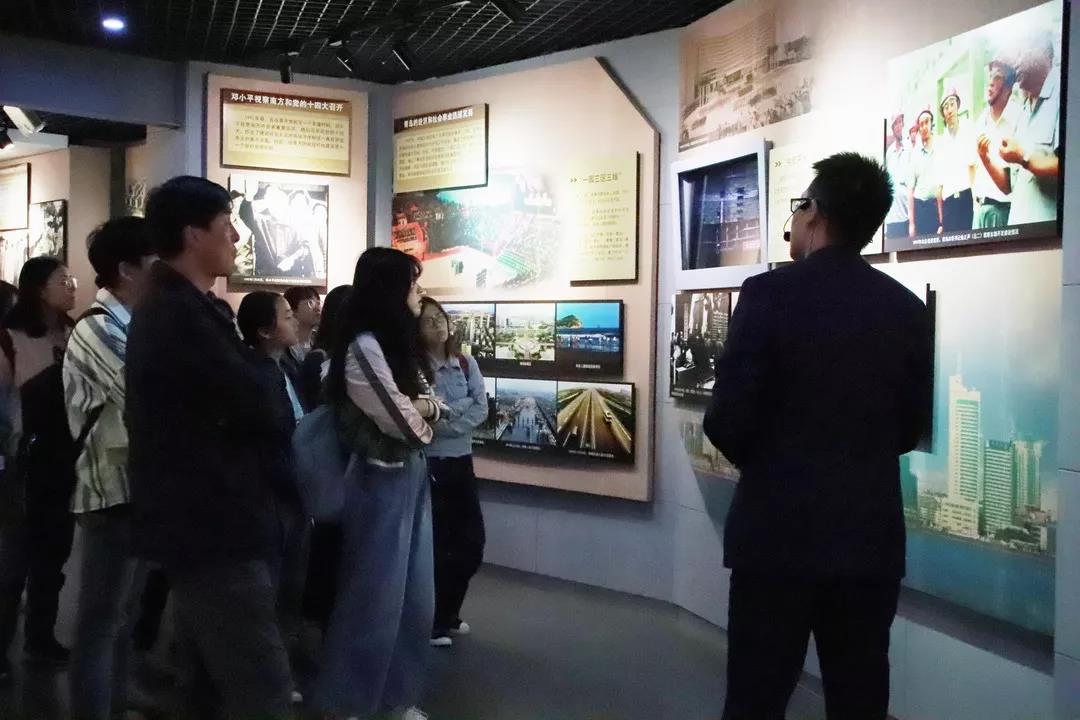 在观看展览期间,讲解员为大家介绍了在党组织的发展过程中壮烈牺牲的革命前辈光辉事迹以及在中国共产党的领导下青岛党组织艰辛探索、开拓创新的光辉历程。同学们认真听讲,观看历史物件,并且积极地与讲解员进行互动。