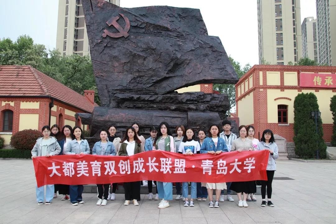 活动的内容主要有两个部分。首先,纪念馆讲解员给同学们介绍了青岛党史馆的标志性雕塑,全体成员在雕塑前合影留念。