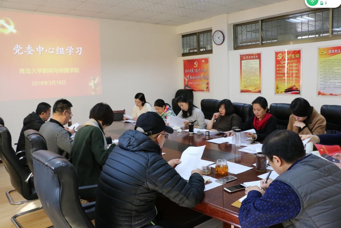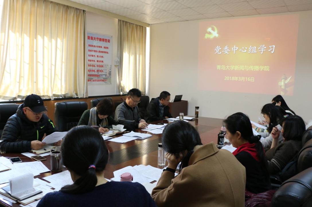 3月16日下午,新闻与传播学院党委中心组(扩大)在博文楼412会议室举行理论学习会,集中学习省委书记刘家义在山东省全面展开新旧动能转换重大工程动员大会上的讲话精神。学院党委书记张银亭主持学习会。学院党政领导班子成员、各党支部书记、系主任参加了学习。