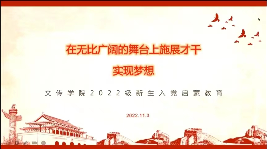 召开2022级新生入党启蒙教育大会。党委书记张辉讲授题为“在无比广阔的舞台上施展才干,实现梦想”的新生入党启蒙教育第一课,2022级本科生和研究生参加会议。会上,张辉围绕党的性质宗旨、入党动机等方面进行讲授,着重对正确的入党动机进行了阐述。