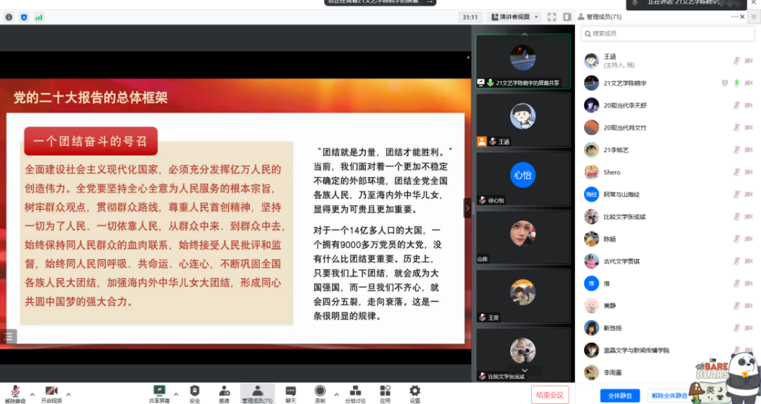 (汉语言文学第三党支部于11月29日线上学习党的二十大精神)