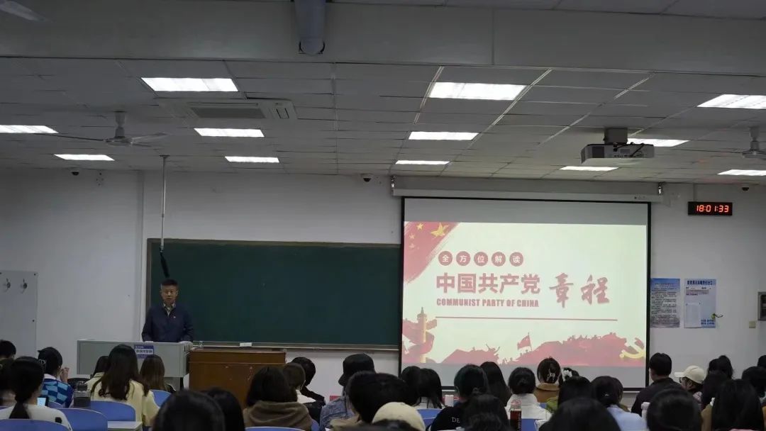 此次党课学习以“学党章不忘初心,新时代建功立业”为主题,张辉书记从《中国共产党章程》的概述、《中国共产党章程》的发展历程、《中国共产党章程》的总纲、《中国共产党章程》的条文、学习和遵守《中国共产党章程》五个方面带领大家学习《中国共产党章程》。在活动中各位与会人员跟随张辉书记重新学习从中共一大到中共二十大《中国共产党章程》的历史沿革、《中国共产党章程》的性质和为人民服务的宗旨。在学习中张辉书记结合自身经历,向大家讲述了中国共产党在解决民生方面的重要举措,让同学们深刻感受到了党和人民之间的鱼水之情。