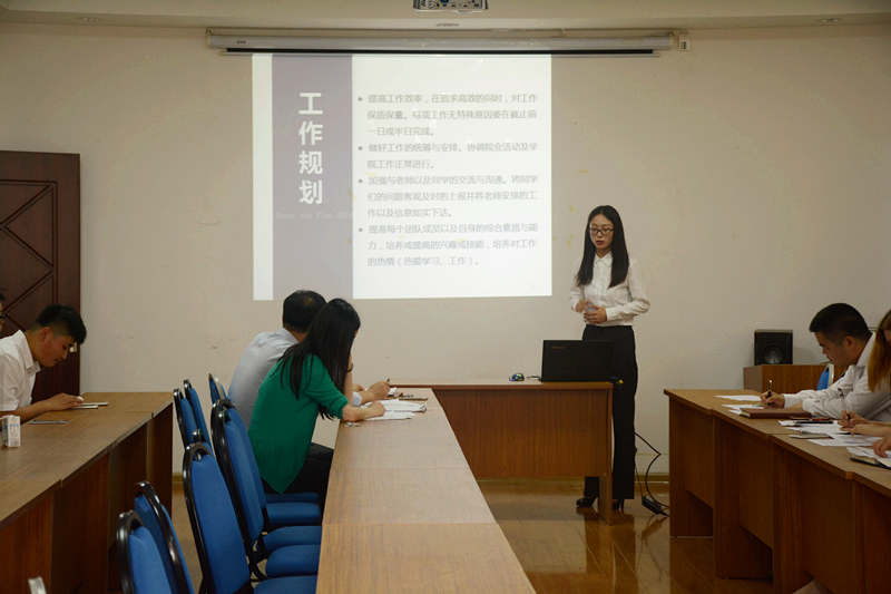 他们都是来自学生会各个部门的优秀成员。在过去的学期中,他们在学生会付出了时间和精力,也锻炼了自己,得到老师、师哥师姐和同伴们的肯定。今天,他们以演讲的形式,总结一学期以来的收获,陈述自己的竞选优势并进行工作展望。新传学院学工办主任王洪运老师、团委副书记杜晓老师以及学院第一届学生会干部到场担任评委。新一届学生会干部名单将在对参加竞选同学进行综合考量之后形成。