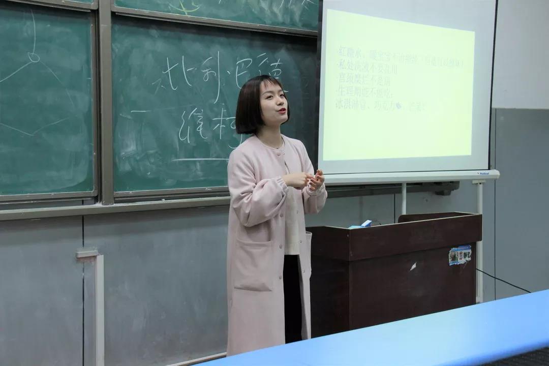 何嘉颖同学主要讲解了我们日常生活该怎么注意卫生、有关生理期的疑问、妇检跟HPV疫苗是否有必要的相关问题。她现场教授了六步洗手法,这种方法可以有效防止因不注意卫生而生病。另外她着重讲解了有关女生生理期方面的健康知识,包括是否能吃生冷食物、红糖水是否有用等等。