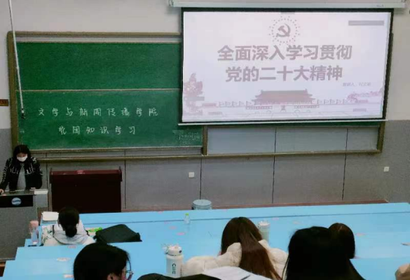 在博文楼211教室举行“昂扬青春跟党走,同心共向二十大”党团知识竞赛集体学习。各年级报名学生参与本次学习,王文柯同学担任主持人,司文豪、任雪凝同学担任主讲人。