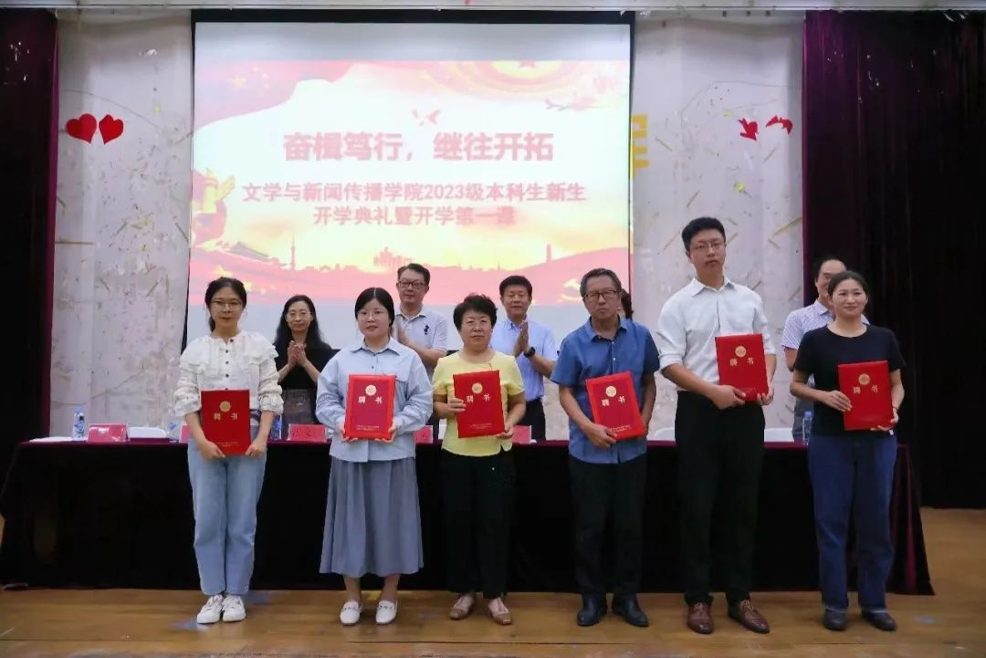 班主任聘任仪式上,周潇宣读了新生班主任聘任名单,并由学院各领导为他们颁发聘书。