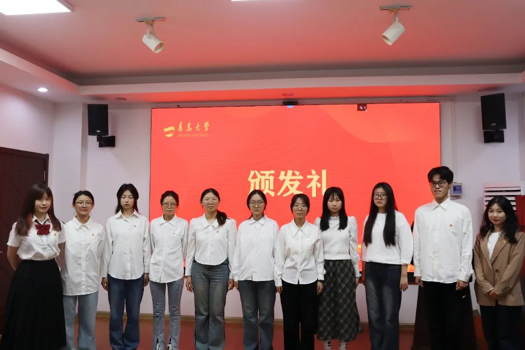 在宣读新发展团员名单后,孙晓萱逐一为新发展团员颁发团员证和团徽徽章。胸前熠熠生辉的团徽,标志着团员们正式成为中国共青团的一份子,象征着团员们发扬艰苦奋斗精神,永远忠于祖国、忠于人民、朝气蓬勃、奋发向上的精神风貌。