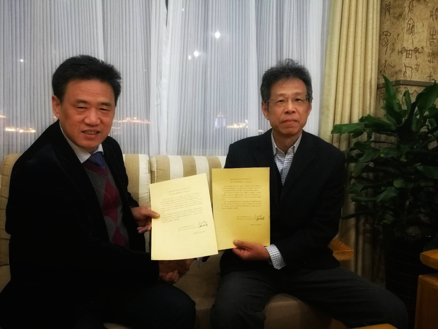 2018年12月14日,我校东亚文学与文化研究中心与复旦大学中国学研究中心签署了合作协议。校党委常委、副校长于永明,文学院院长刘东方教授和复旦大学中文系主任陈引驰教授见证了合作协议的签署。东亚文学与文化研究中心主任魏韶华教授和复旦大学中国学研究中心主任吴兆路教授分别在合作协议书上签字。