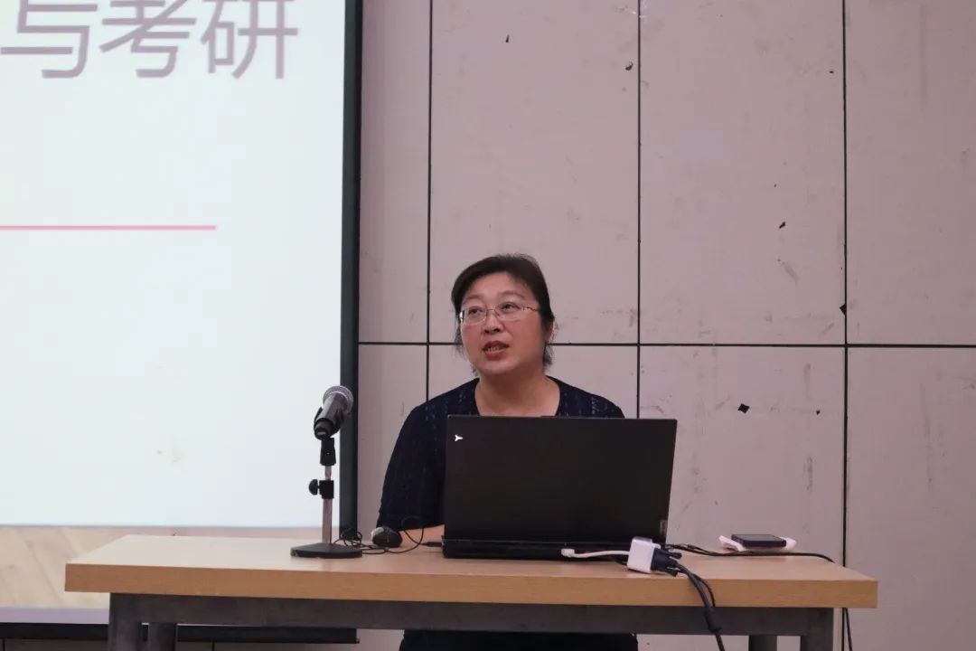 戚昕围绕“以终为始”一词,从“就业”与“考研”两方面进行了讲述。她提到,对于毕业生而言,毕业等于选择,而面临这样的选择时,难免会迷茫无措,不论体制内还是体制外的工作,都要牢牢把握住机会,知道自己想要什么并为之努力。她向大家介绍了考研、考公、考编、企业单位等常见的就业选择,同时用一组组数据向大家展示了上一届毕业生就业与考研的情况,提醒同学们放宽视野,寻找适合自己的就业方向。