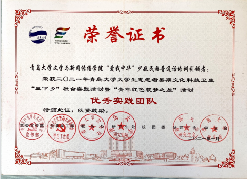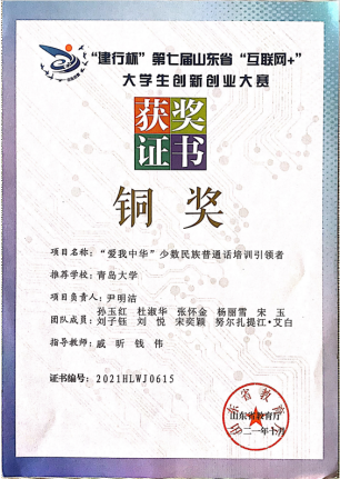 “三下乡”社会实践活动暨“青年红色筑梦之旅”活动优秀实践团队、第七届山东省“互联网+”大学生创新创业大赛省赛铜奖、2021年黑料