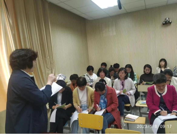 此次教研活动分为课例展示和专题讲座两个环节。第一节课是由邵明娜老师执教四年级下册阅读课《铁杵成针》,第二节课是由李璐老师执教的三年级下册写作课《身边那些有特点的人》。周潇就两位老师的课逐一做了细致的点评指导。她充分肯定了两位老师课堂教学中的可取之处,如阅读教学课堂气氛活跃,结构完整,情境导入符合学情,巧用支架引导学生思考、表达,联系实际体悟精神等。写作教学环环相扣,层层深入,创设情境,激起学生写作欲望等。也准确指出了课堂教学存在的不足,并针对学设计和一些教学环节,提出了自己的建议。