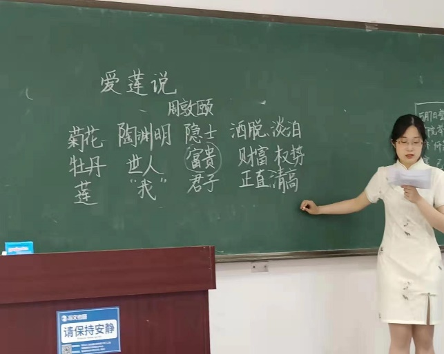 本次比赛分为初中语文组和高中语文组两个类别,比赛内容包括模拟讲课、答辩和钢笔字书写三个环节。为更好地考查师范生的语文专业素养和教学能力,本次比赛每组精选两篇课文作为参赛篇目,参赛选手任选一篇课文完成教学技能展示。评委从教材分析、目标设计、教学过程、板书设计等多方面对选手进行综合考核。