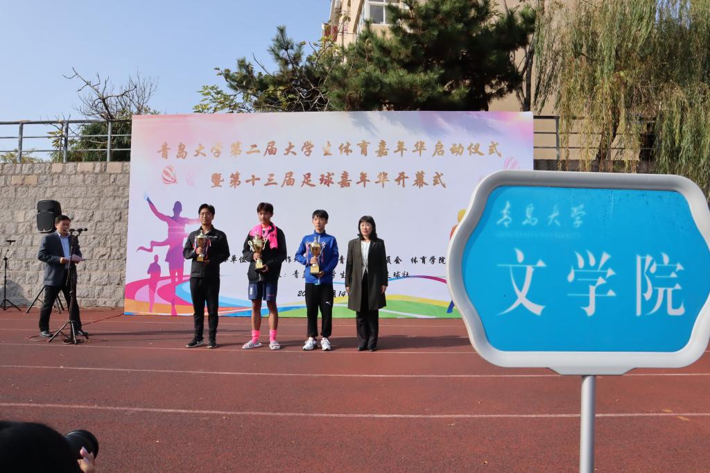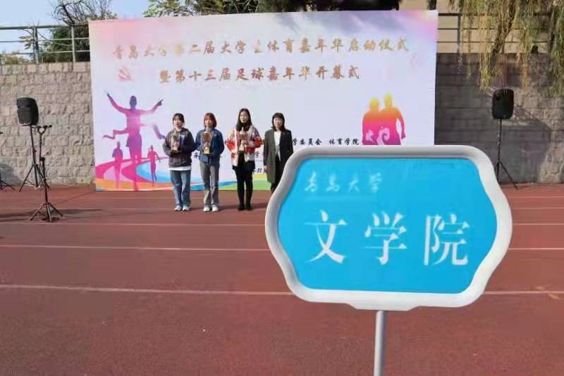 浮山校区滢园操场成功举行。文学院参加颁奖活动的有文学院党委副书记戚昕老师、团委书记宋静宜老师、学生会执行主席高凤璐。
