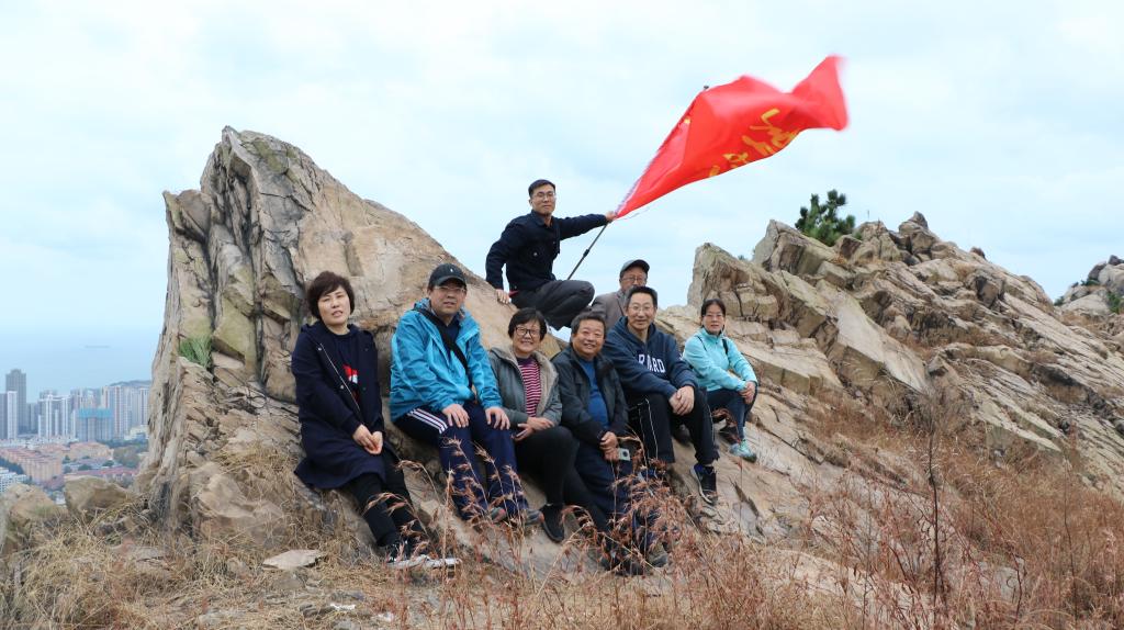 文学院”旗帜,兵分两路:一路穿过浮山校区,拾级而上,徒步至浮山脚下;一路乘车沿青大路直逼浮山山脚。而后,文学院教工在浮山脚下汇合,浩浩荡荡沿山路而上:大家或交相攀谈,交流情感;或相互提醒,注意安全;或相互鼓励,奋进向前。最后,在杨立华书记的带领下, 共有八人登上山顶,一览浮山景致,饱尝秋日黄海。