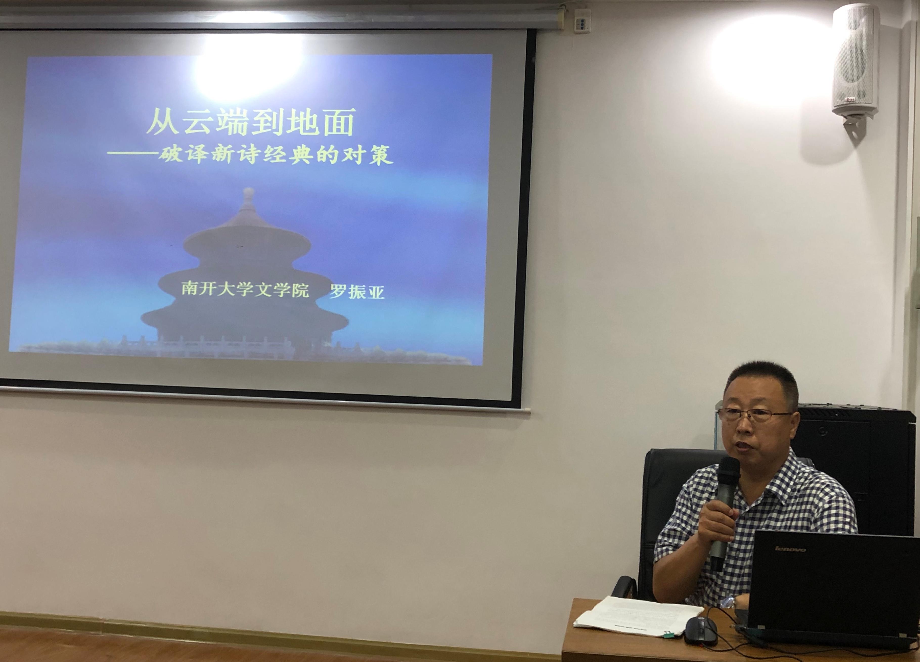 本次讲座罗振亚教授从三个方面为我们提供了破译新诗的路径与方法。罗教授认为新诗存在“经典”,但如何走进“经典”、破译“经典”密码至关重要。罗教授指出解读新诗要明确历史主义态度和立场;对新诗的评价应放置于特定的文学与历史语境中加以考察,而不能用当下的经典标准去苛求。但文学批评更应从审美维度出发;逐步破译新诗的意象密码,品味新诗中体现情绪律动的自由化语言。最后,罗教授进一步为大家提供了可行的解读新诗的方法论,譬如,横纵向比较法、整体阅读和细读的统一、进行创造性的“悟”读。罗教授在本次讲座中引用大量新诗进行佐证,以自己广阔的学术视野、新颖的学术思维和轻松幽默的表达方式带领在座师生逐步揭开了新诗的“神秘面纱”。