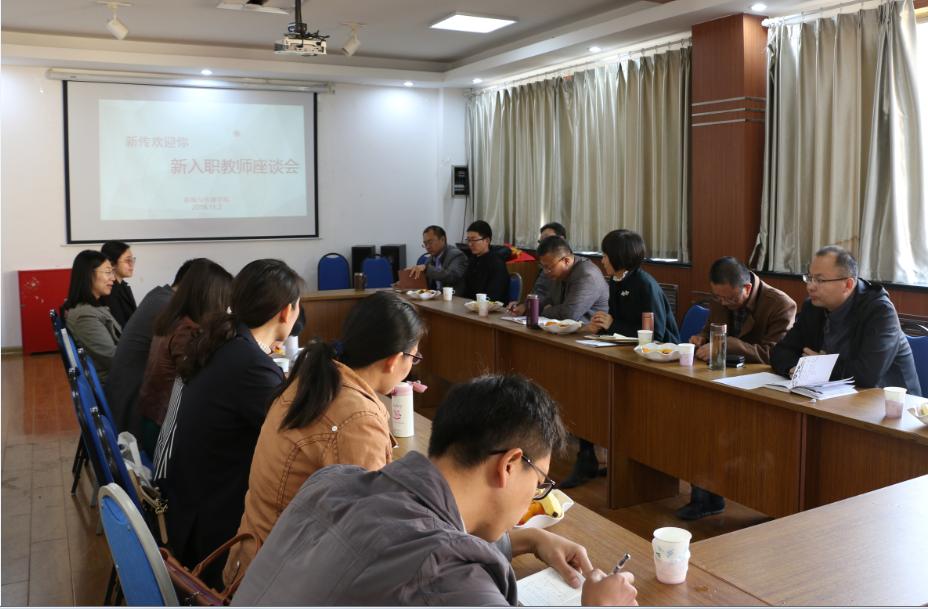 2018年11月2日下午,新闻与传播学院在博文楼521会议室召开新入职教师座谈会,学院党委书记张银亭、院长赵秀凤、副院长邱秉常及教师代表、新入职教师参加座谈会。