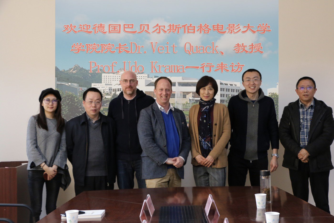 进行访问交流。院长赵秀凤、副院长邱秉承和新闻系赵星耀副教授热情接待了巴贝尔斯伯格电影大学客人一行,双方就今后在教学、学术研究和影视创作等方面可以开展的交流合作进行了深入探讨。