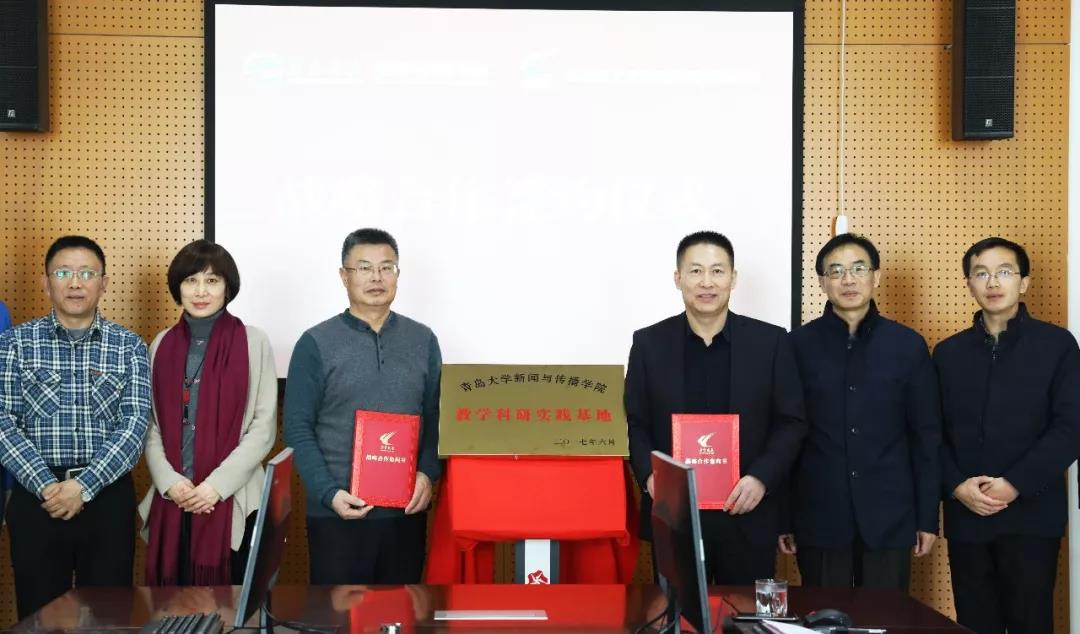 12月21日上午,新闻与传播学院与山东新文化影视传媒有限公司《战略合作意向书》签约仪式暨教学科研基地授牌仪式在临沂市政务服务中心会议室隆重举行。临沂市社科联党组书记、主席刘勋建,山东新文化影视传媒有限公司董事长、沂蒙文化学会会长赵伟臣,学院党委书记张银亭、院长赵秀凤、副院长邱秉常等出席仪式。双方本着“优势互补、资源共享、共同发展”的原则,开展校企合作,并建立长期、紧密的战略合作关系。
