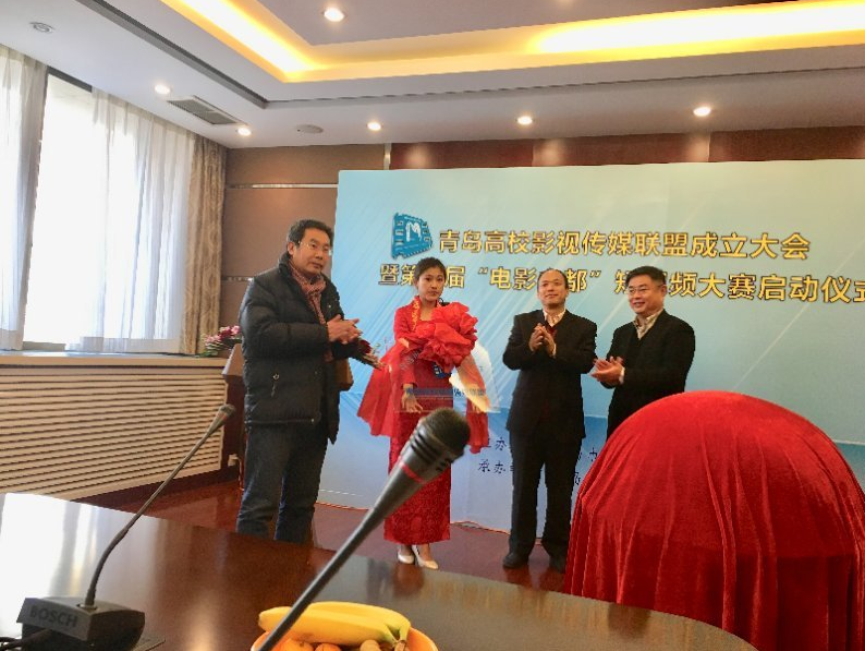 承办的青岛高校影视传媒联盟成立大会暨第一届“电影之都”短视频大赛启动仪式在我校办公楼201会议室举行。校党委常委、副校长夏东伟,青岛市文学艺术界联合会副主席徐强,山东省高校影视传媒联盟会长马池珠共同为青岛高校影视传媒联盟揭牌。