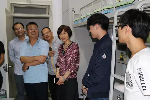 浮山校区圆满结束,新闻与传播学院党委书记张银亭,院长赵秀凤,党委副书记罗清辉,辅导员王洪运老师带领新生代班们到新生宿舍关心、慰问新生。