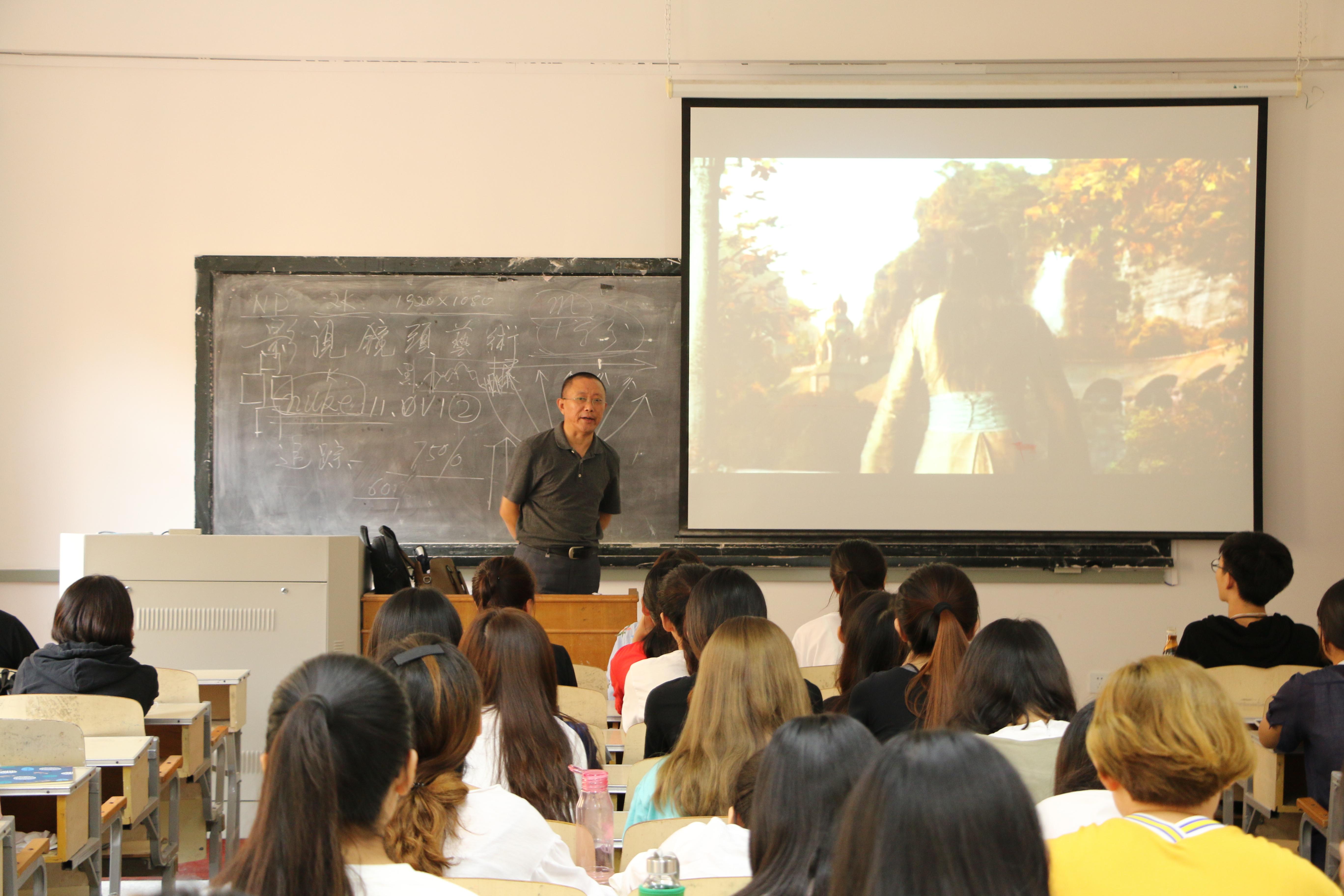 9月5日上午,中国高等院校影视学会理事、山东省电影家协会理事、青岛市影视艺术家协会副主席、新闻与传播学院副院长邱秉常教授于浮山校区西院博知楼306教室作高端学术讲座,新闻与传播学院影视系全体学生以及其他学院部分学生参加讲座。