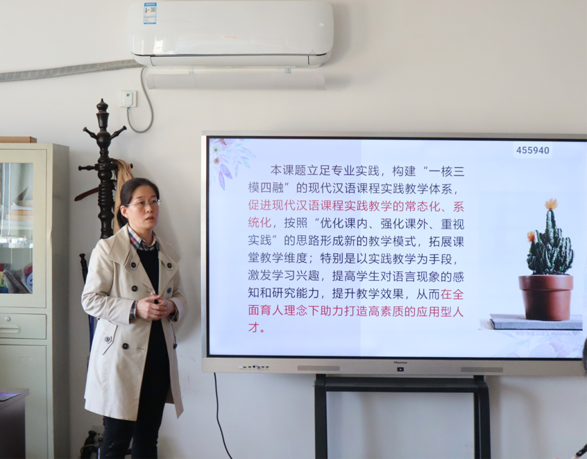 在博文楼503室召开“一核三模四融”:现代汉语课程实践教学体系的构建开题报告会。本次活动由钱伟老师担任报告人,黑料