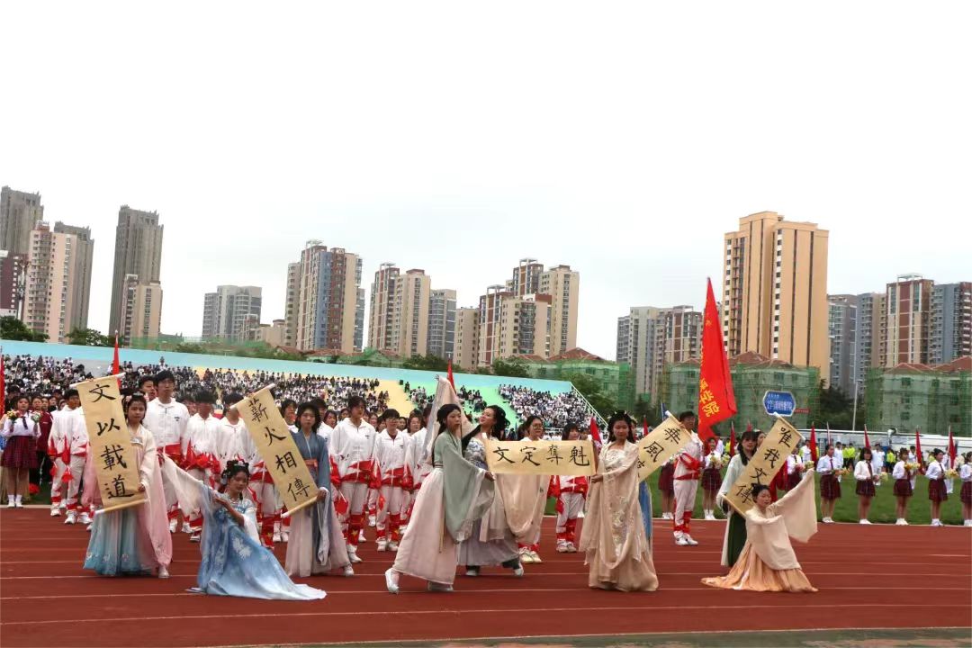文传学院学生参赛队伍由彭丽蓉、董方洁等40名同学组成。开幕式上,文传健儿们目光坚定,响亮而又整齐的口号展示了他们必胜的决心:“文以载道,薪火相传,乘风破浪,唯我文传!”