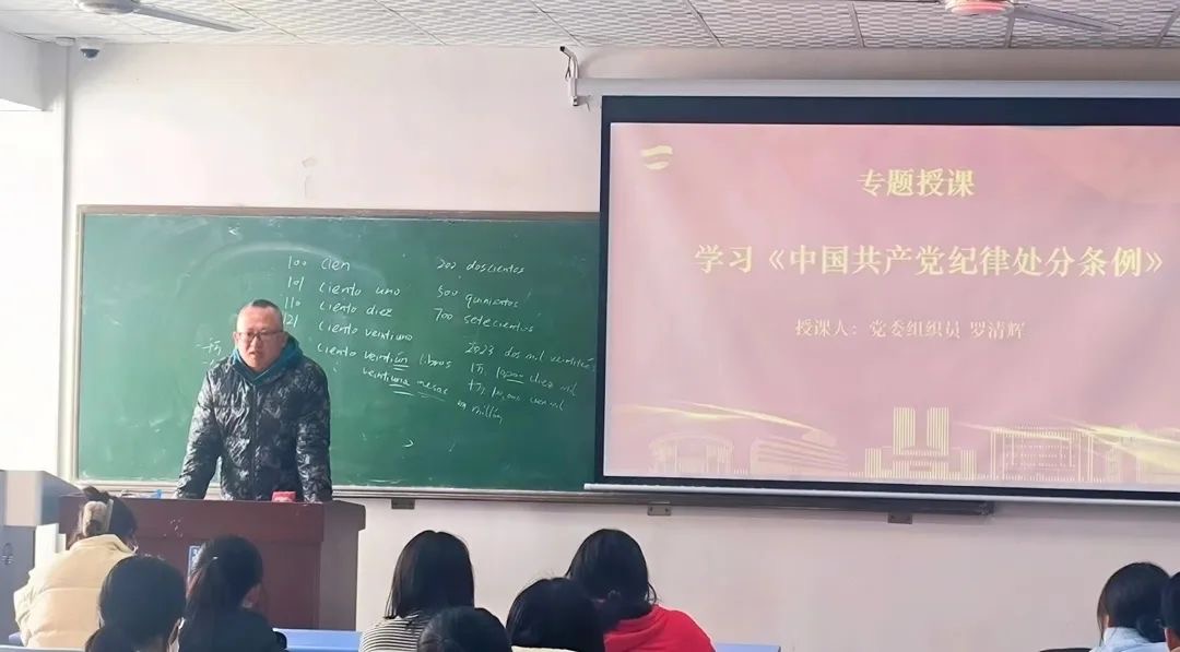 罗清辉领学并解读《中国共产党纪律处分条例》。罗清辉强调,入党积极分子阅读熟知《中国共产党章程》和《中国共产党纪律处分条例》具有重要性和必要性。罗清辉从学生实际出发,梳理了同学们在向党组织靠拢过程中存在的普遍问题,并带领大家逐条学习党规党纪,要求入党积极分子应以党员的标准严格要求自己,严守党的纪律,强化党性观念。罗清辉勉励学员们在日常学习生活中将党的相关理论知识扎扎实实学习好,踏踏实实践行好。