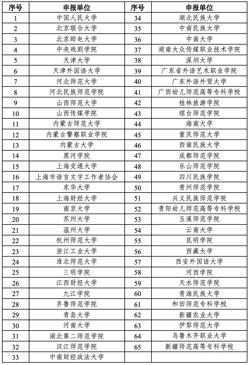 2023年12月12日,教育部官网发布《关于第三批国家语言文字推广基地拟认定名单的公示》。经全国各省级教育(语言文字工作)部门遴选推荐、专家评审、实地考察、综合评议等程序,拟认定中国人民大学等65家单位为第三批推广基地,我校包括其中。