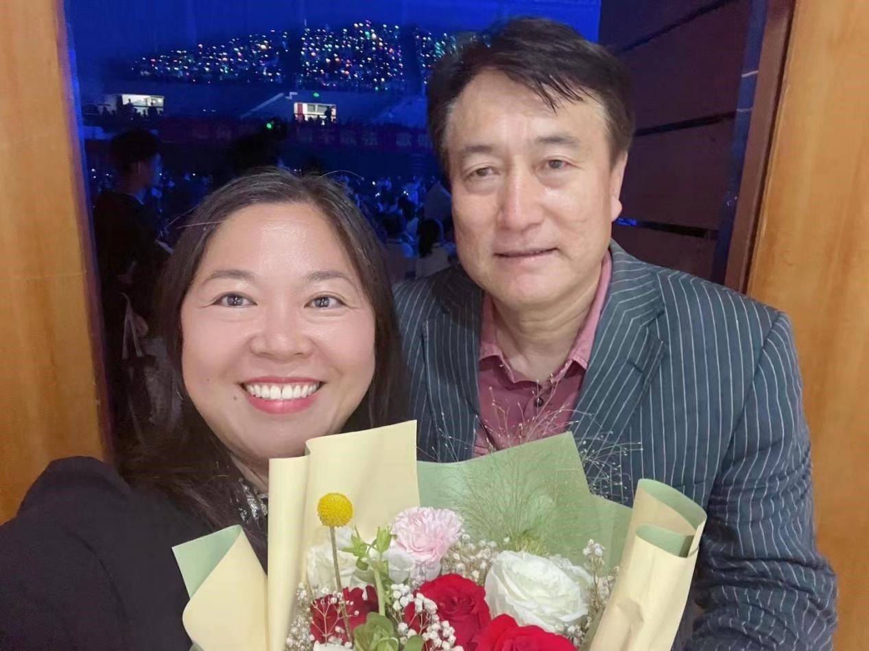 王丽君校友为史玉峤教授献花并合影