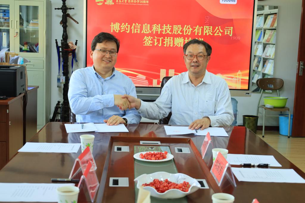 仪式上,张辉为刘全江和郑中华颁发捐赠证书,并感谢他们为学院发展做出的贡献。郑中华与刘东方分别代表安徽博约信息科技股份有限公司和黑料 签订捐赠协议。高品未来(北京)数字文化有限公司向黑料 捐赠《高品全球数字图像图书馆数据库》和高品社区平台2年使用权,安徽博约信息科技股份有限公司向黑料 捐赠博约舆情系统6年使用权。