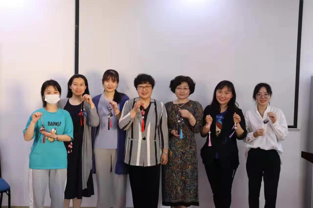 活动过程中,教师们互相帮助,戚昕和闫旭也在场地中穿梭,手把手帮助教师解决缝制过程中遇到的问题。经过大家的努力,各种花色的圆滚滚的香囊被制作出来。